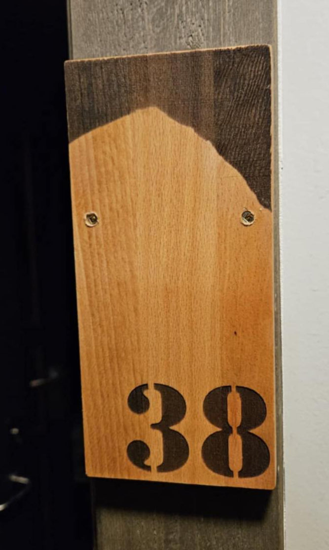 Lasergraverte dørskilt til Raubergstulen Turisthytte